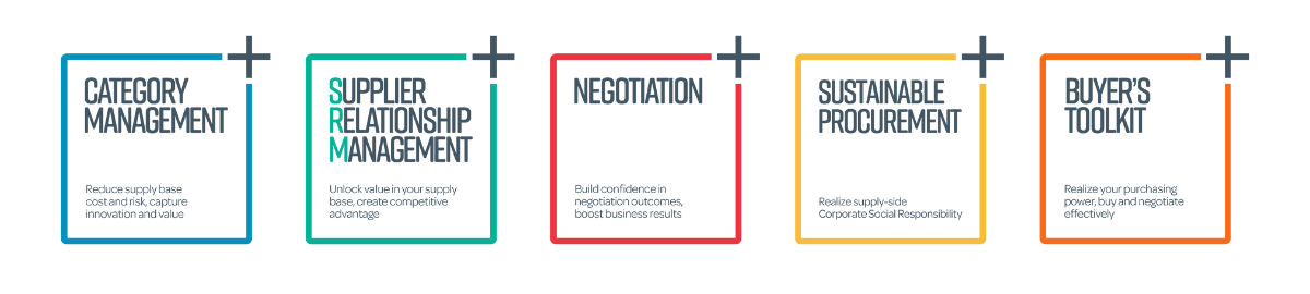 Procleus includes everything you need for strategic procurement outside of P2P, together with specialist programs to drive new capability in Category Management, Supplier Relationship Management, Negotiation and Sustainable Procurement, each built on proven methodologies developed over the last 21 years.